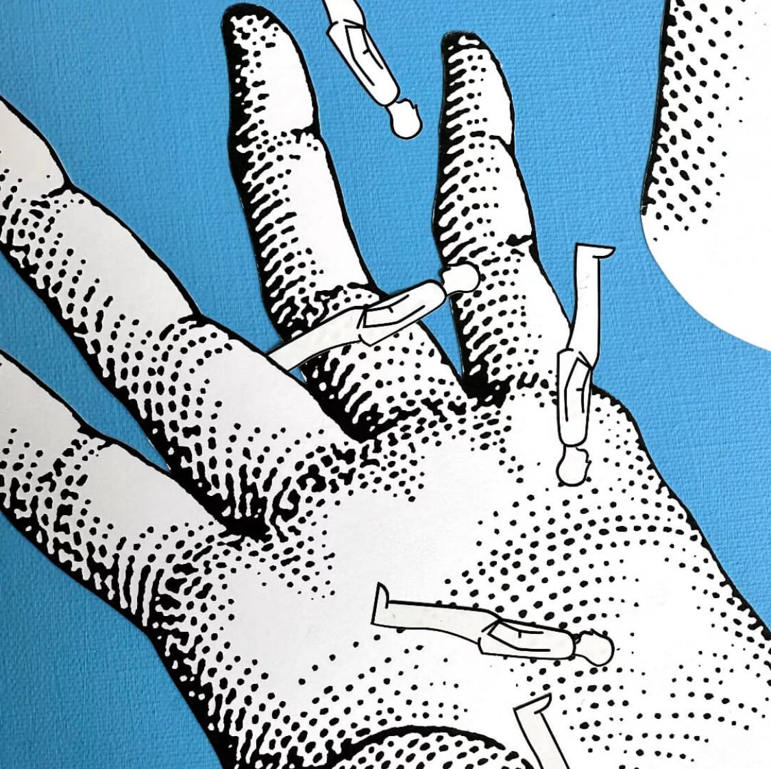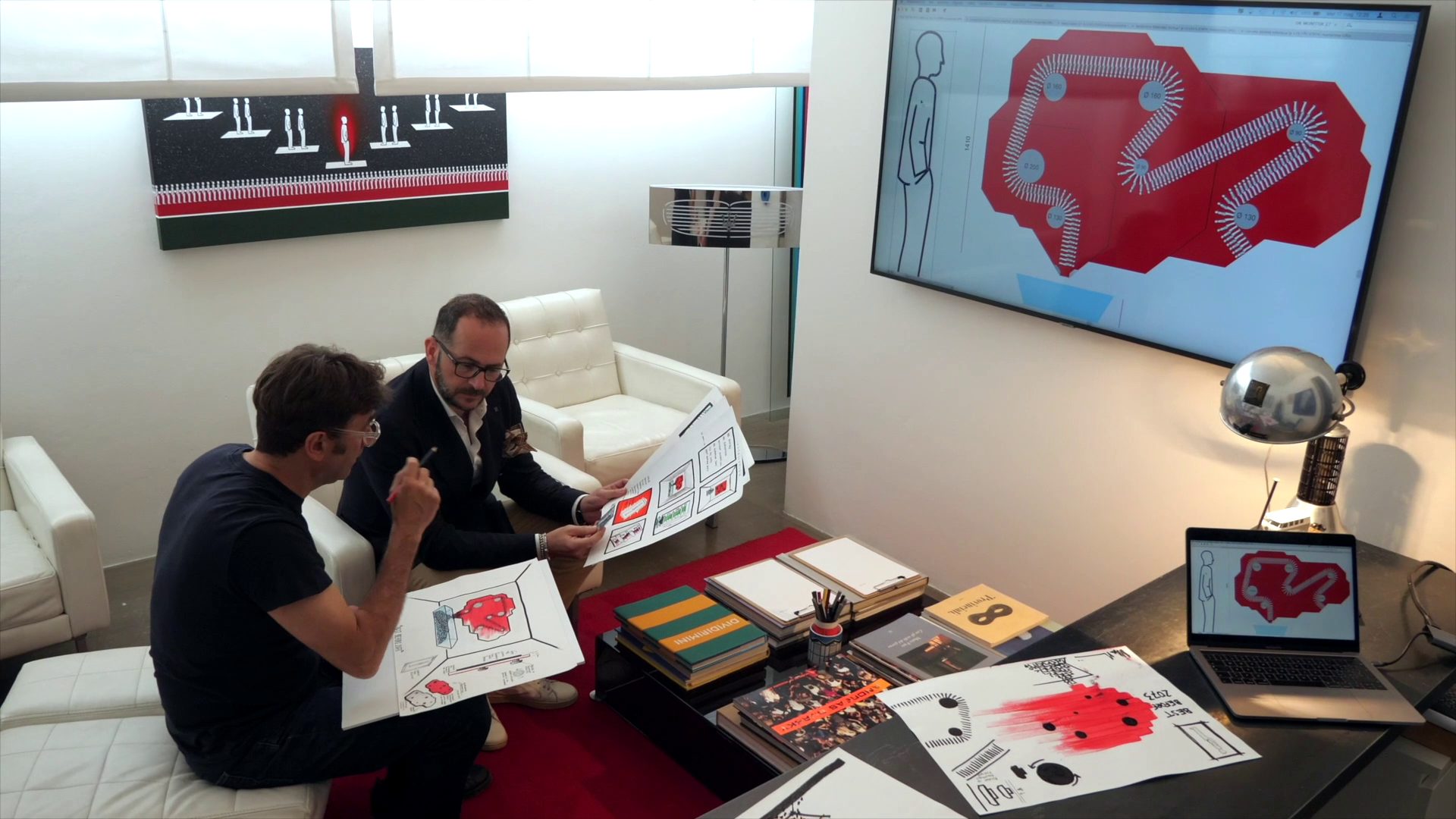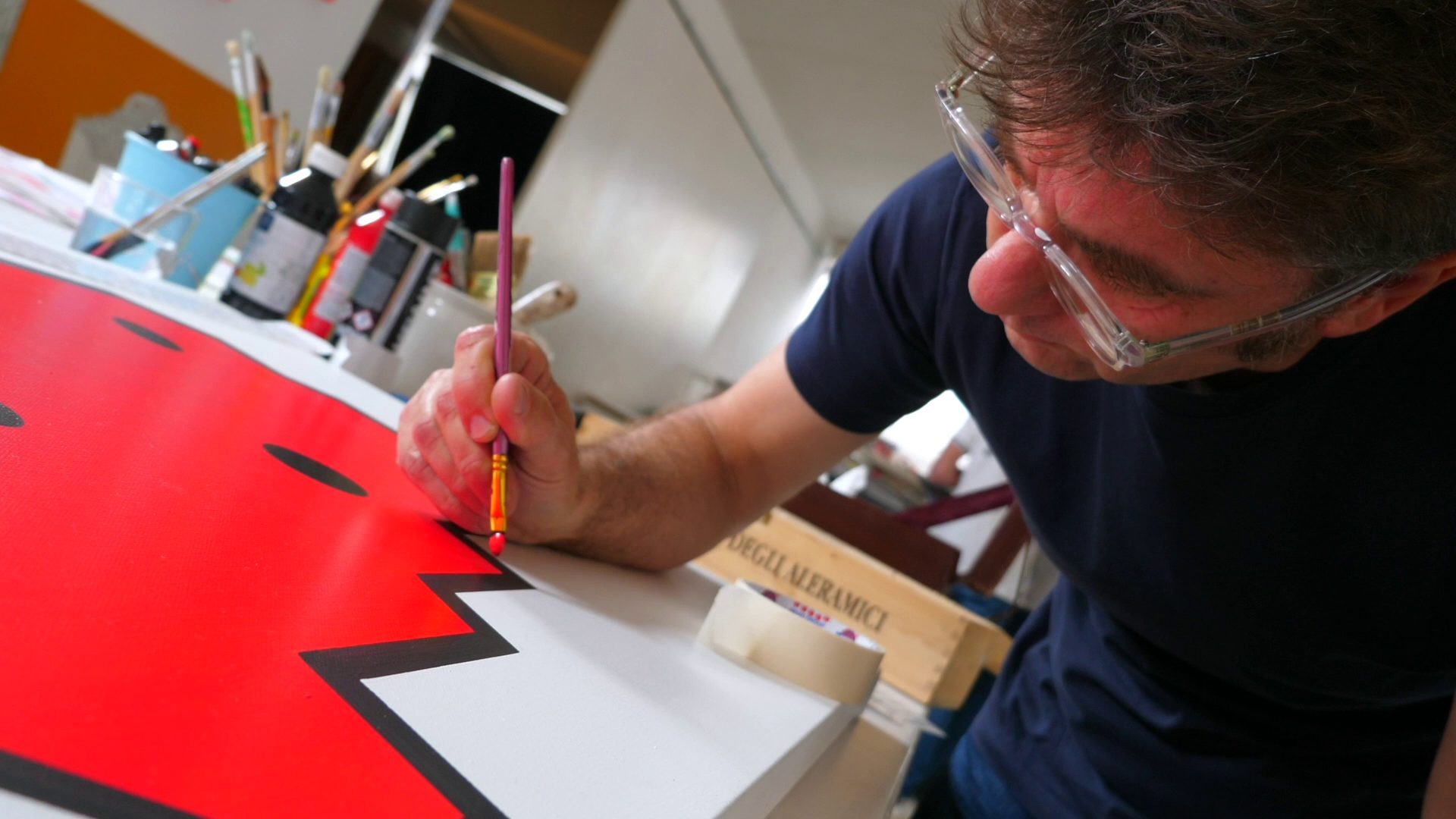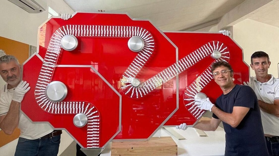 Dalla tela poi, Giovanni Nocita (direttore commerciale e marketing di Omag) e Marco Morosini, con la partecipazione di Galleria Zamagni, hanno dato vita all’opera. Un breve video documenta la realizzazione step by step, dai bozzetti di Marco all’installazione dell’opera. Un percorso che ha visto coinvolti anche i dipendenti nella progettazione e approvvigionamento dei materiali, fino alla realizzazione delle bustine posizionate sotto l’opera stessa.