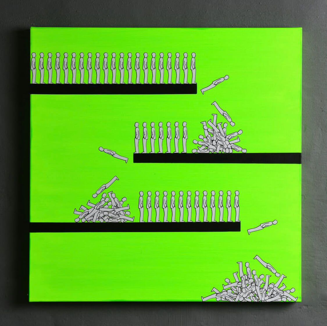 L’opera si intitola “Best before: 2073” e fa parte della serie uominiuomini ormai celebre dell’artista.